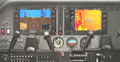 This is the front panel of the new Ceesna 182 with the Garmin GPS system.